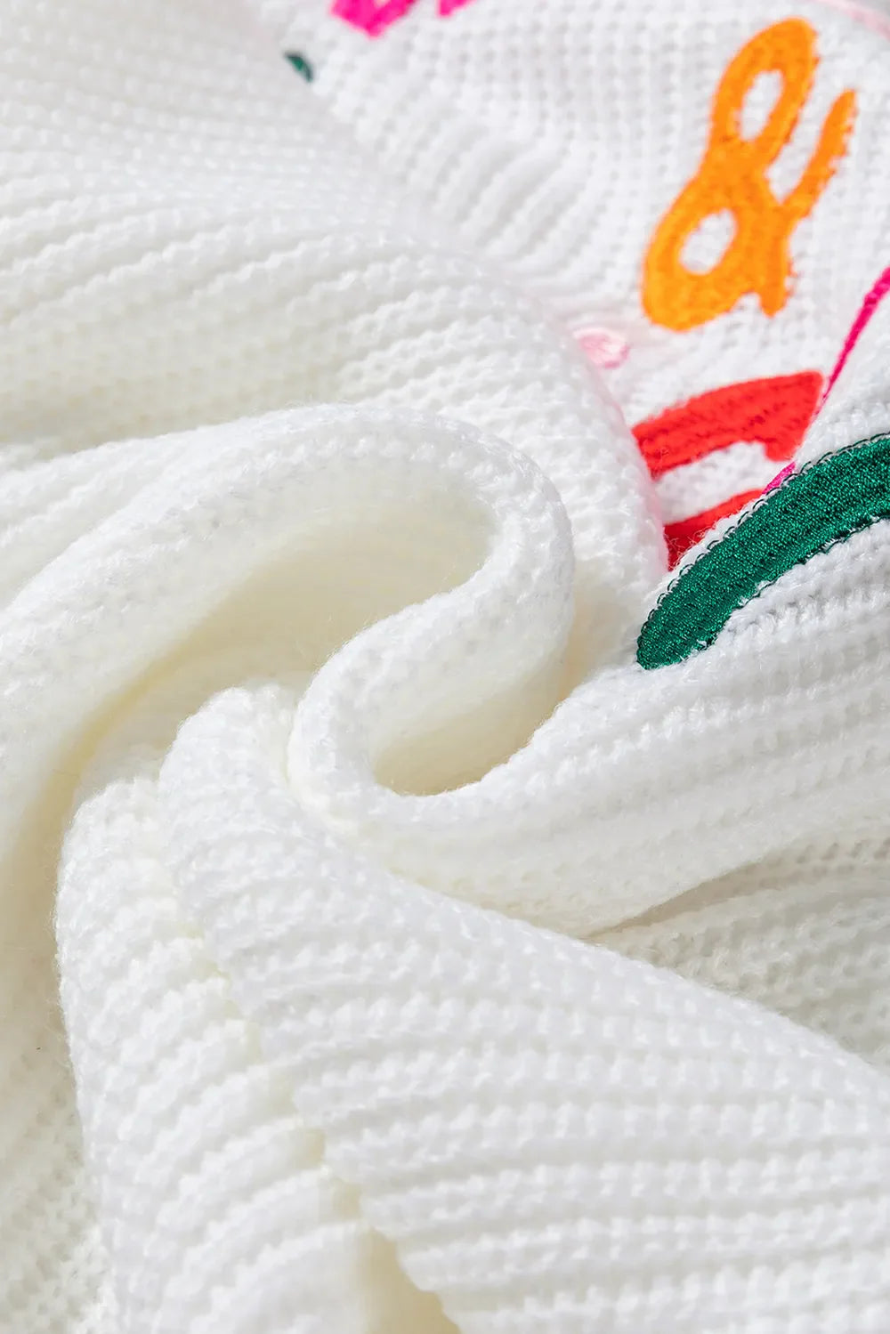 Fejr sæsonen i dristig stil med Glædelig & Lysende Regnbue Trim Juletrøje. Denne legende pullover har livlige “Glædelig & Lysende” bogstaver i festlige regnbuefarver over brystet, parret med farverig regnbue ribbet trim langs halsudskæringen, ærmerne og kanten. Den lyse hvide base fremhæver de multicolor accenter og skaber et muntert og moderne julelook. Fremstillet af et blødt akrylstrik med en let strækfølelse, tilbyder denne trøje komfort hele dagen, mens den holder dig varm. Fås i hvid, sort eller pink, det er den perfekte blanding af sjov og festlig charme til din sæsonbestemte garderobe.